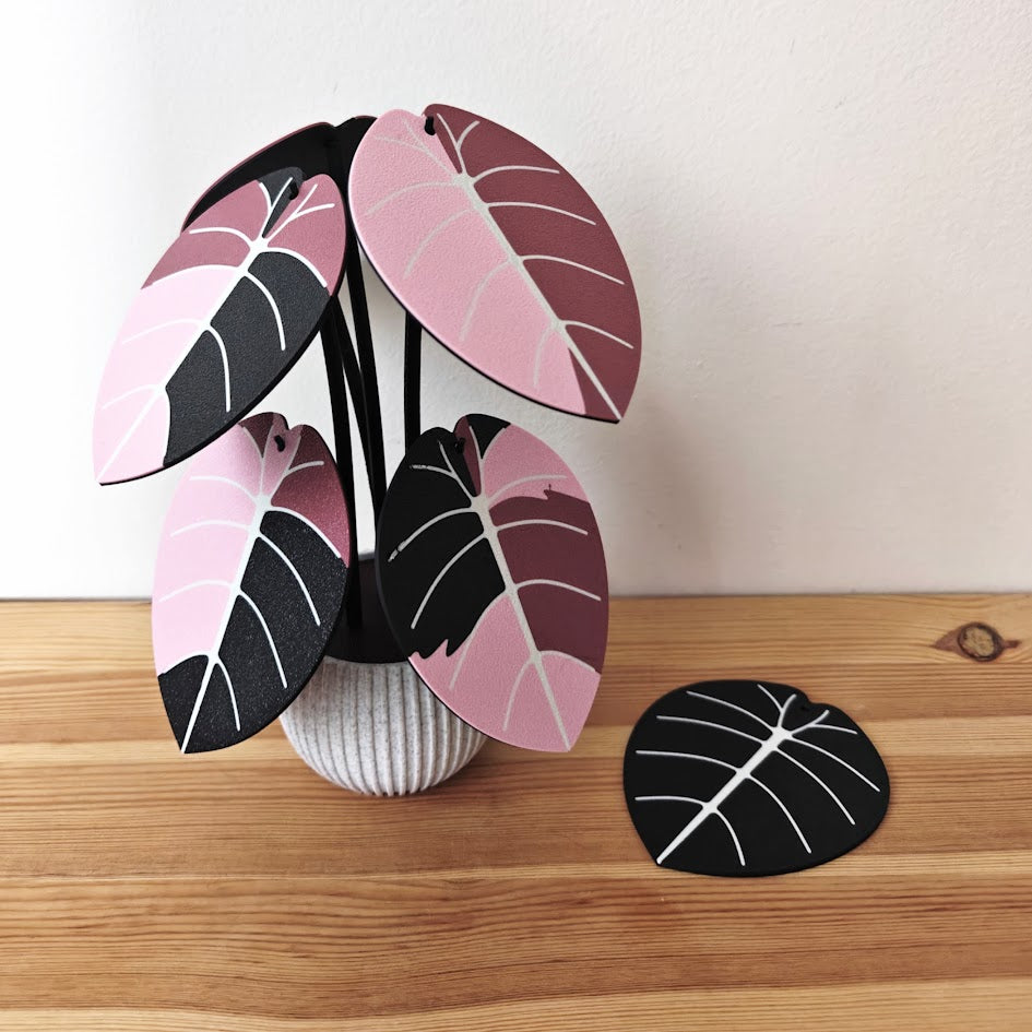 Perfectly crafted to mimic the bold and striking leaves of the Jewel Alocasia plant, these coasters are as functional as they are decorative.