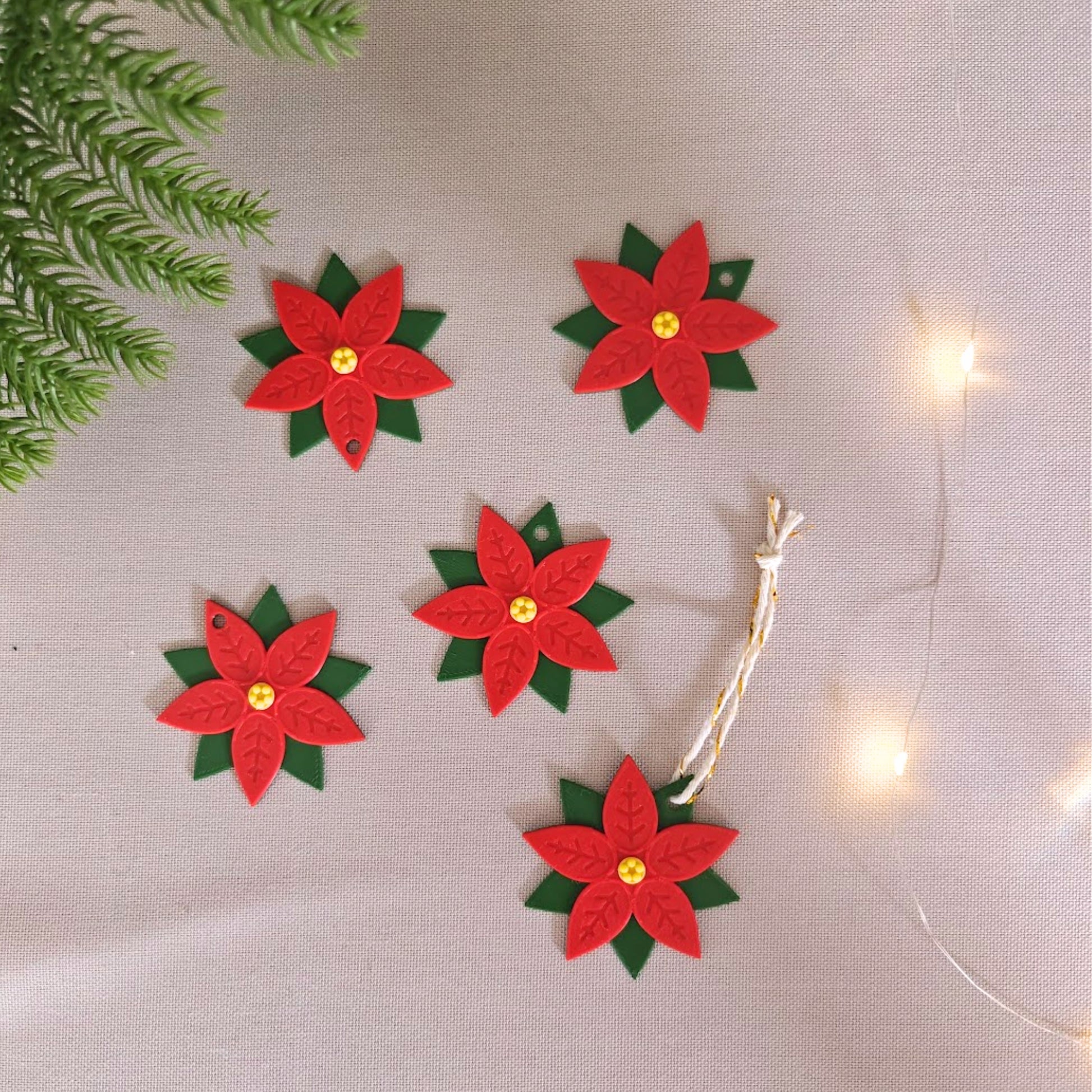 Poinsettia Plant Ornaments, Set of 5 pcs